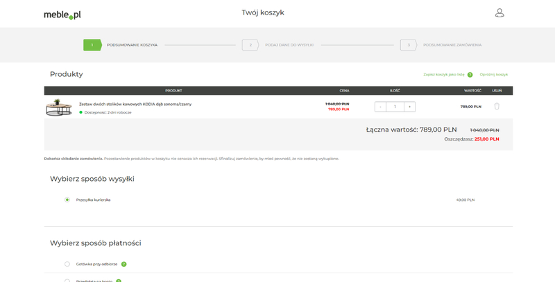 Konsumenci coraz częściej są przyzwyczajani przez najróżniejsze sklepy e-commerce do szybkiej realizacji zamówień. Duża część sklepów wysyła produkty już w 24 h od momentu zakupu. Branża meblowa ze względu na specyfikę może jednak odbiegać od tego standardu. Niektóre meble są produktami na zamówienie, co znacznie wydłuża termin realizacji zamówienia.