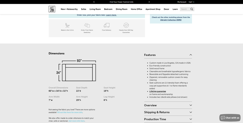Wymiary produktu można znaleźć najczęściej w karcie produktu w tabeli „Dane techniczne”. To dobra praktyka, gdyż zazwyczaj to właśnie tam użytkownicy kierują swój wzrok w poszukiwaniu tego typu informacji. Można jednak wyjść o krok dalej i zobrazować wymiary produktu na jego rzucie lub zdjęciu. Przewagą takiego podejścia, nad podawaniem wymiarów w tabeli jest to, że użytkownik dostaje jednoznaczną informację o tym, której części produktu dotyczy dany wymiar.