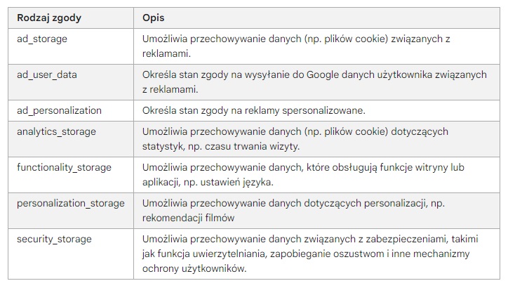 - Natomiast w Google Consent Mode v2 dodano dwa nowe parametry:
