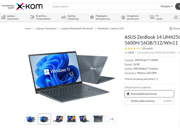Przykład możliwości podglądu laptopa w wymiarze 360 stopni. Źródło: x-kom.pl.
