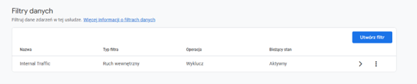 Brak wykluczenia ruchu wewnętrznego może wskazywać, że większość naszych użytkowników pochodzi z miejscowości lub miejsca, gdzie pracują osoby odpowiedzialne za obsługę strony. To prowadzi do podejmowania decyzji na bazie zniekształconych danych. Konfiguracja filtrów ruchu wewnętrznego pozwala nam na ograniczenie tego zniekształcenia danych oraz zbieranie tylko jakościowego ruchu na stronie.