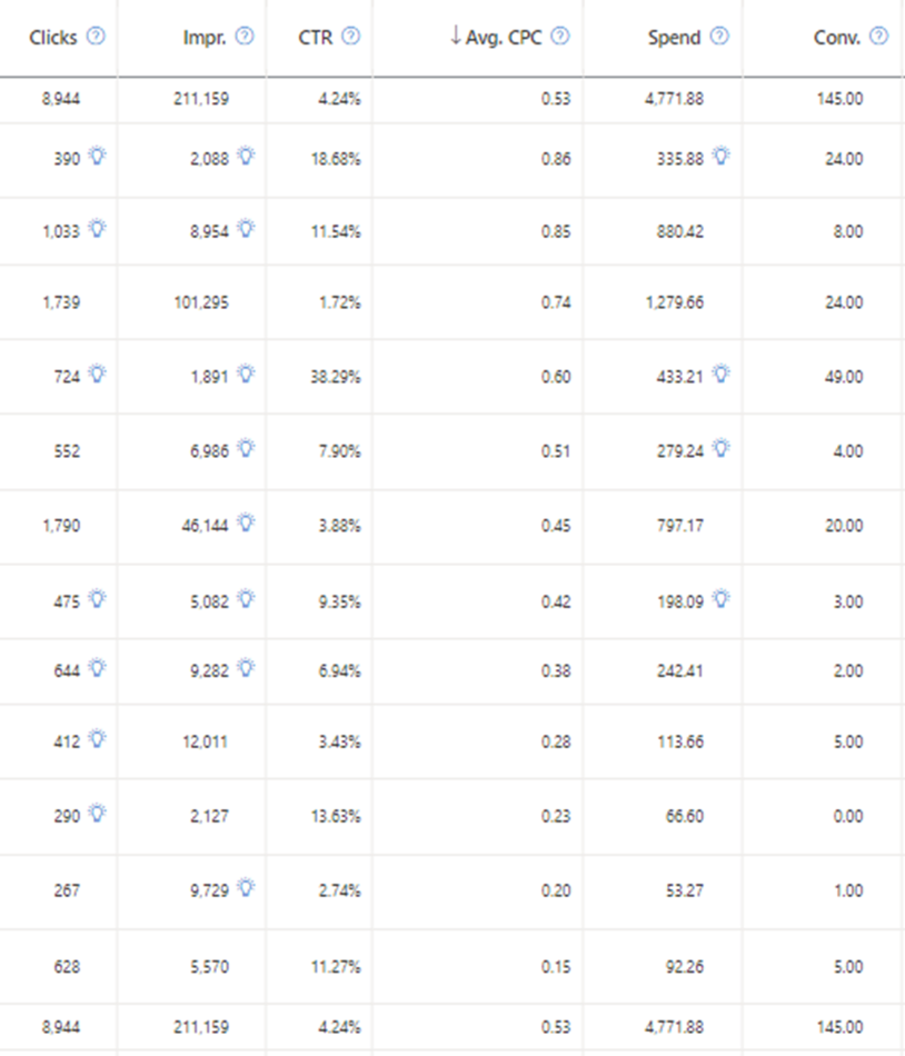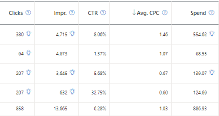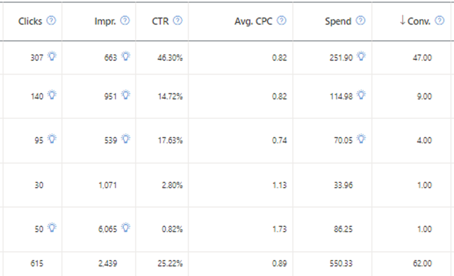 Mniejsza popularność ze strony internautów, to także mniejsza konkurencja ze strony reklamodawców, będąca jedną z głównych zalet Microsoft Ads. Dla wielu branż mniejsza konkurencja wiąże się także z niższym kosztem za kliknięcie reklamy.