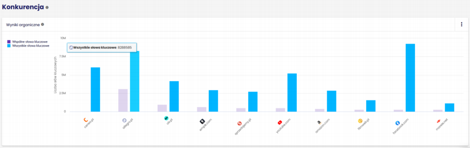 - Następnym krokiem będzie wykonanie analizy konkurencji – w tym wypadku warto porównać swoją stronę do konkurencji i sprawdzić, na jakie frazy się wyświetla w porównaniu do naszej strony. Tu również powinniśmy zweryfikować jakie podstrony najlepiej rankują u konkurenta oraz czy my posiadamy podobne.