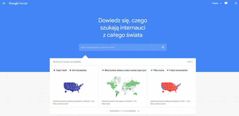 Poszukując luk w Naszych treściach, warto rozważyć trendy, jakie panują w danej branży. Dzięki temu wyprzedzimy konkurencję, „serwując” klientowi treści, których może niebawem potrzebować. Dzięki temu pozyskamy nowych klientów szybciej, niż konkurenci z tej samej branży. Bardzo przydatnym narzędziem do analizowania tego typu zachowań fraz jest Google Trends.