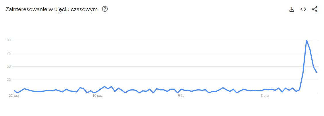 Jeśli chodzi o popularność portalu w Polsce warto przyjrzeć się danym z Google Trends. Oto dane dotyczące popularności narzędzia w ciągu ostatnich 90 dni: