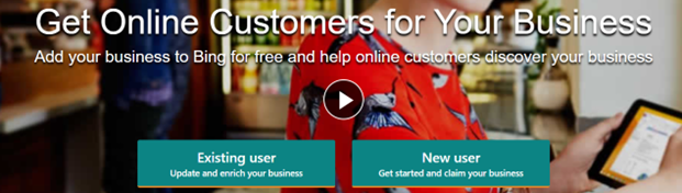 W pierwszej kolejności należy zalogować się w serwisie Bing Places for Business. Możemy wybrać już istniejące konto lub założyć nowe.