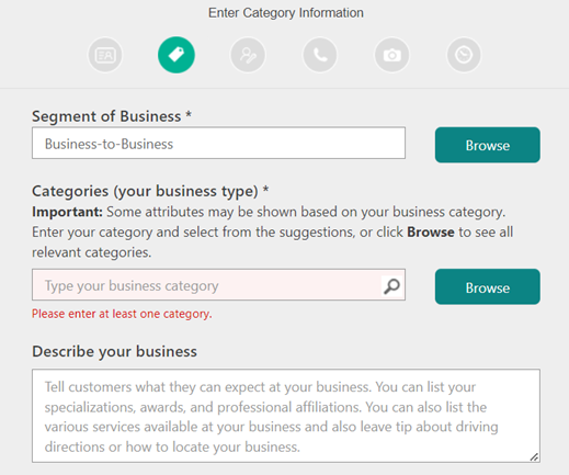 Jedną z informacji, którą należy precyzyjnie określić podczas uzupełnienia profilu firmy, jest kategoria działalności. Ważne jest, aby dodać tę właściwą kategorię, ponieważ dzięki niej wiele klientów może trafić na profil firmy w wynikach wyszukiwania. Bing Places umożliwia wybór jednej kategorii głównej i do 10 podkategorii. Konieczne jest wskazanie maksymalnej ilości pasujących podkategorii z dostępnych na liście, gdyż w ten sposób zwiększamy szanse na pojawienie się w wynikach wyszukiwania większej ilości potencjalnych klientów. Pamiętajmy, że można szukać tego samego na wiele różnych sposobów. Naszym zadaniem jest przewidzieć te najbardziej popularne frazy opisujące promowany biznes i uwzględnić je w danych profilu.