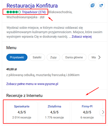 Recenzje zwiększają wiarygodność firmy. Pozytywne opinie klientów pokazują robotom wyszukiwarki, że prawdziwi ludzie lubią oferowane przez firmę usługi i produkty. Ponadto jest to też sygnał dla potencjalnych klientów mówiący o tym, że dana firma jest godna zaufania.