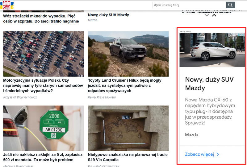 Przykład dobrze dobranej reklamy do strony wyświetlającej: