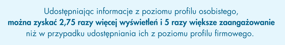 To może znaczyć, że świadomość, dotycząca potrzeby budowania marki osobistej liderów w kontekście wzmacniania wizerunku firmy nie jest jeszcze na zbyt dużym poziomie. To z kolei sprawia, że to idealny moment na to, by zacząć. Zważywszy choćby na to, że odbiorcy dużo chętniej angażują się w treści publikowane nie przez profile marki, ale przez jej ambasadorów, którymi są właśnie przedstawiciele jej zarządu i członkowie samej organizacji.
