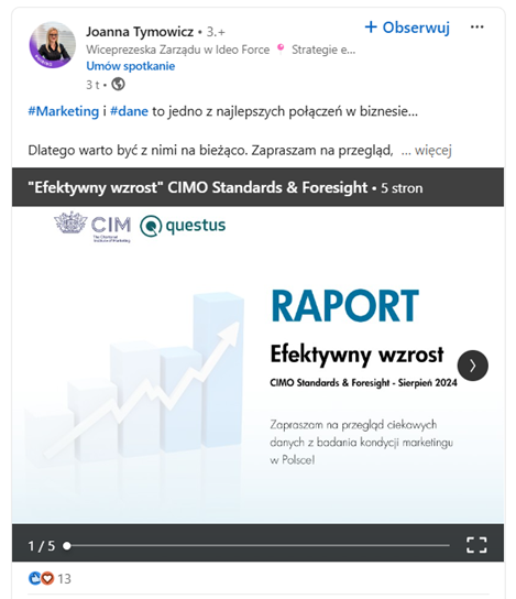 - Obecność liderów organizacji na LinkedInie znacząco zwiększa autentyczność i rozpoznawalność firmy w środowisku biznesowym.