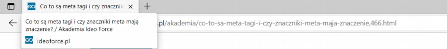 Znacznik tytułowy określa unikalny tytuł danej podstrony. Jest widoczny w pasku przeglądarki lub na liście organicznych wyników wyszukiwania, znajdując się tuż nad linkiem, który prowadzi do danej podstrony.