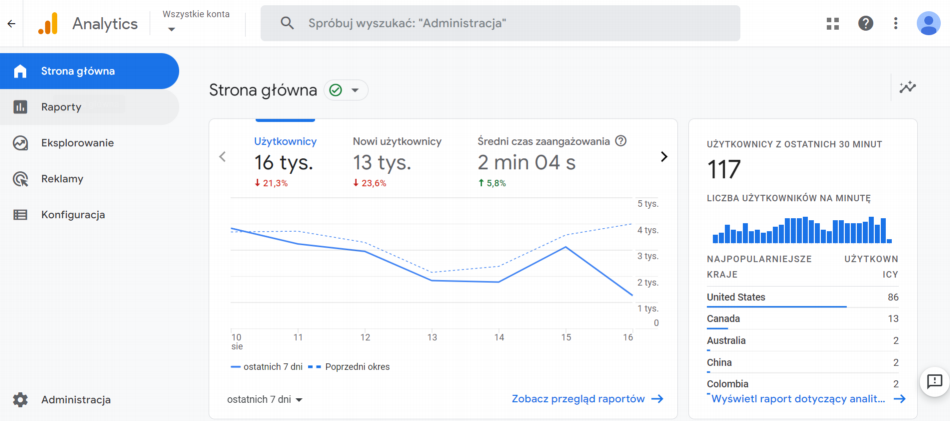 Widok interfejsu GA4. W Google Analytics 4 zmienia się zarówno zasada działania narzędzia, jak i jego interfejs.