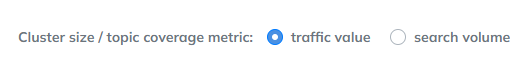 Wielkość klastrów oznacza ilość wyszukiwań lub ekwiwalent reklamowy w zależności jaką opcję ustawimy nad mapą: