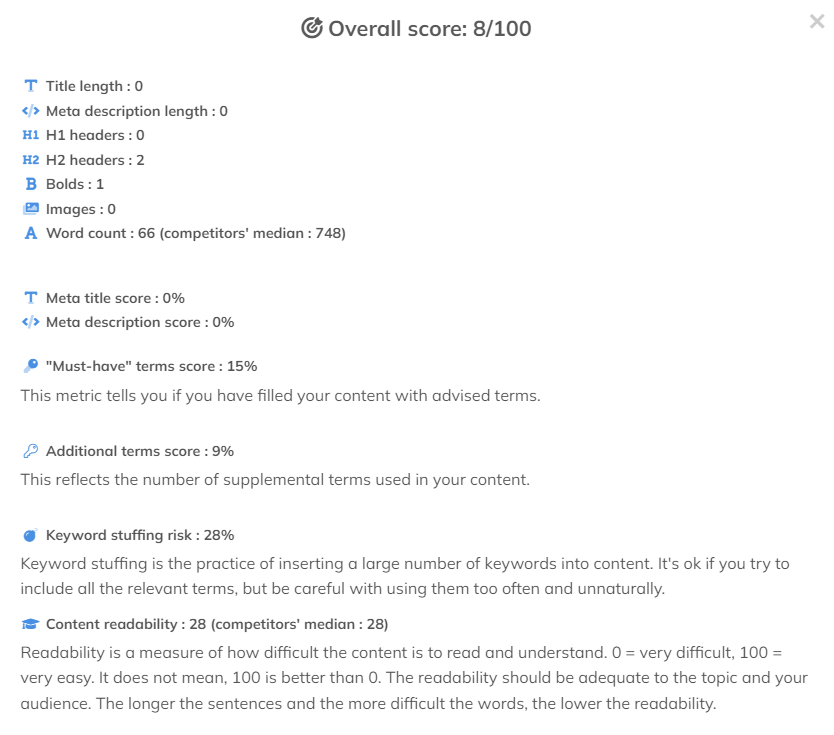 Jest także Content Score, który pomoże nam określić poziom naszego tekstu: