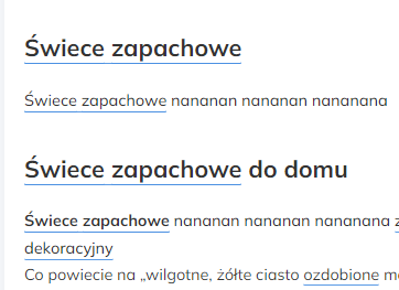 Jeszcze ciekawiej się robi, gdy widzimy jak w wyszukiwarce interpretowane są synonimy/podobne frazy. Wiele z nich jest nawet pogrubiana. Oznacza to, że Google traktuje je podobnie do naszej wpisywanej frazy. Przykład: