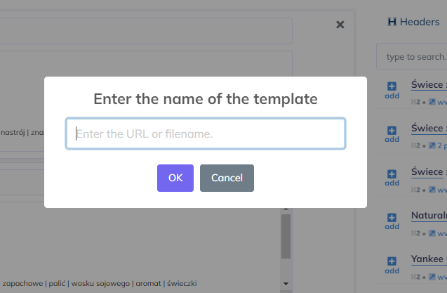 Możemy także dodać swoje, dodatkowe frazy kluczowe. Podczas przechodzenia do edytora wybieramy czy chcemy zacząć tworzyć tekst od nowa czy zacząć pracę na podstawie innej, już opublikowanej treści w serwisie.