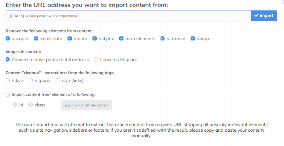 Bardzo szybko można także zaimportować treść z jakiegoś adresu URL: