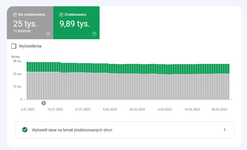 Źródło: Zrzut ekranu raportu „Stan indeksu” jednego z naszych klientów e-commerce