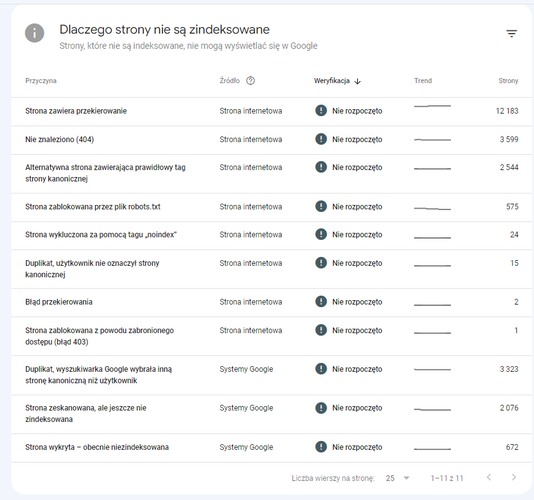W Google Search Console w przypadku analizy crawl budget bierzemy pod uwagę dwa raporty. Pierwszym jest tzw. „Stan indeksu”, który znany jest również jako Index Coverage. Raport ten jest z reguły bardzo obszerny. Jednakże zawarte w nim dane związane z adresami URL, które zostały wykluczone z ineksowania są dobrą okazją do tego, aby zrozumieć, z jakimi problemami przyjdzie nam się zmierzyć.