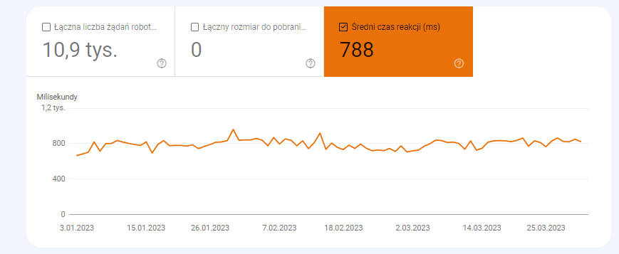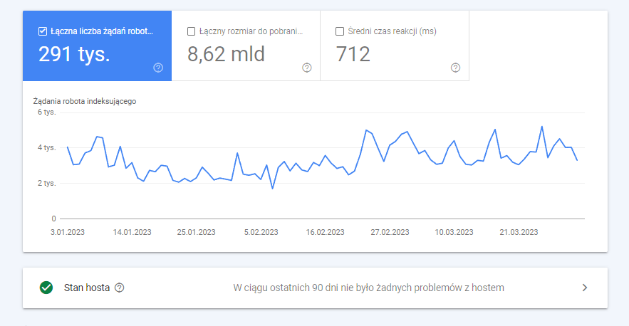 Drugim ważnym raportem w GSC pod kątem budżetu indeksowania, jest ten związany ze „Statystykami indeksowania”.