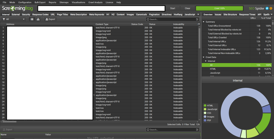 - Screaming Frog - to tzw. crawler zewnętrzny, którego celem jest zasymulowanie tego, w jaki sposób roboty sieciowe poruszają się po stronie internetowej. Dzięki temu narzędziu możemy tak naprawdę zidentyfikować, czy wszystko, co dzieje się na stronie, jest tak, jak być powinno.