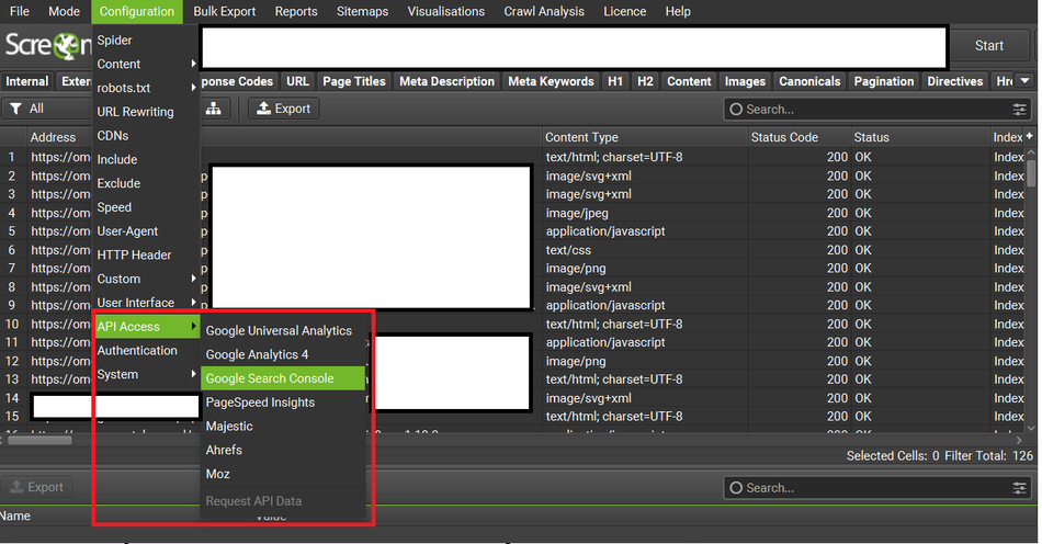 Warto w tym miejscu skorzystać z możliwości, jakie daje Screaming Frog i połączyć go z danymi Google Analitycs 4 oraz Google Search Console. W ten sposób możemy szybko zidentyfikować crawl budget waste, czyli na przykład adresy URL bez ruchu, które hipotetycznie mogą być zbyteczne.
