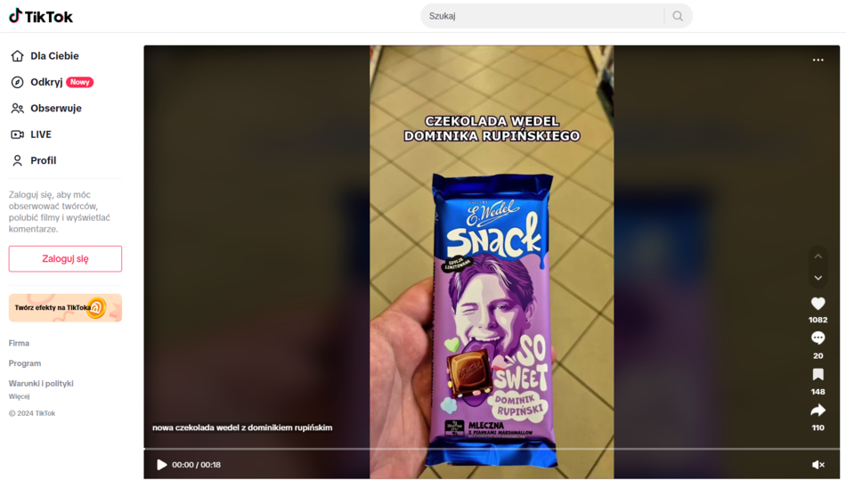 W ramach ciekawostki, w tym elemencie działań idzie zresztą o krok dalej – sygnując jeden ze swoich produktów twarzą znanego wśród młodszych pokoleń influencera – Dominika Rupińskiego.