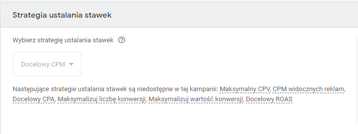 Już na początku rzuca się w oczy fakt , że nowy format ma charakter typowo zasięgowy. Celem reklamy audio jest przede wszystkim zwiększanie zasięgu i budowanie świadomości marki. Kampania rozlicza się według stawek CPM (koszt tysiąca wyświetleń) i właśnie ona jest tutaj najistotniejszą statystyką. Nie można wszakże wymagać zbyt wielu aktywności od osób, którzy podczas słuchania YouTube myją okna lub gotują barszcz. Warto również podkreślić, że jedyną strategią optymalizacji stawek, do jakiej mamy tu dostęp, jest Docelowe CPM.