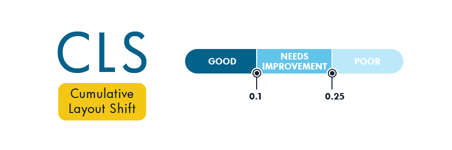 - CLS to wskaźnik mierzący stabilność strony. Wskaźnik ten liczbowo obrazuję sumę przesunięć widocznych podczas ładowania się odwiedzanej strony.
