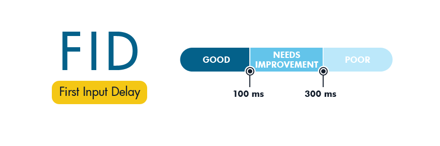 - FID odpowiada za opóźnienie podczas pierwszego renderowania strony. Innymi słowy jest to miara tego, jak szybko serwis staje się interaktywny tj. klikalny, użyteczny.