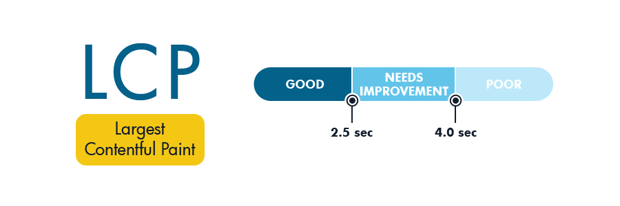 W najprostszych słowach można powiedzieć, że jest tu oceniana szybkość ładowania serwisu. Jej pomiar odbywa się na podstawie czasu, jaki przeglądarka potrzebuje aby załadować i wyświetlić największy element strony. Jak widzimy na zamieszczonej grafice obrazującej progi oceny - wymagania ze strony Google są bardzo wysokie.