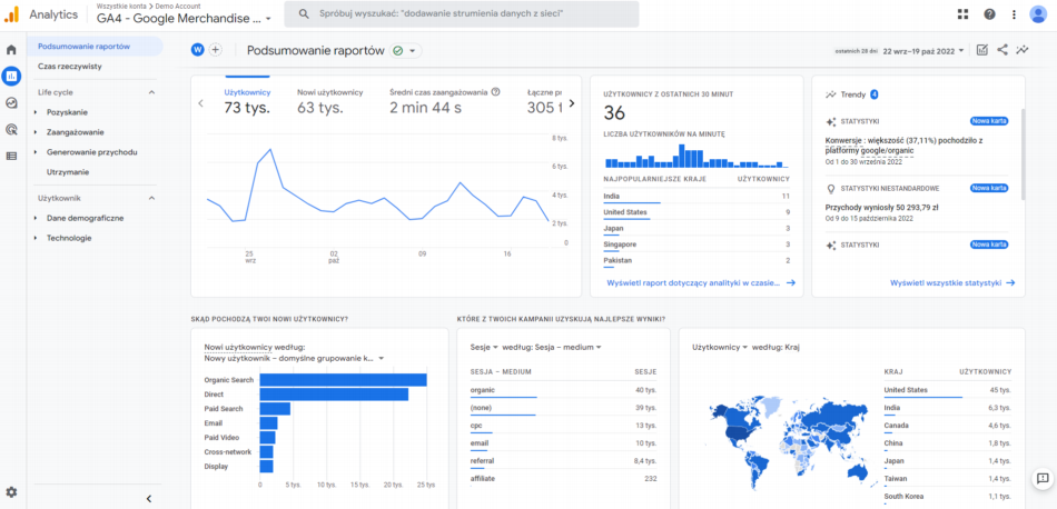 Źródło: Jeden z raportów dostępnych w Google Analytics 4.