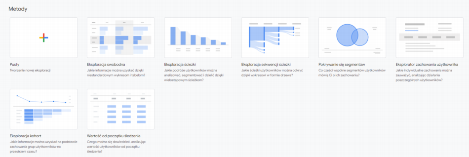 Źródło: Różne typy eksploracji danych dostępne w Google Analytics 4.
