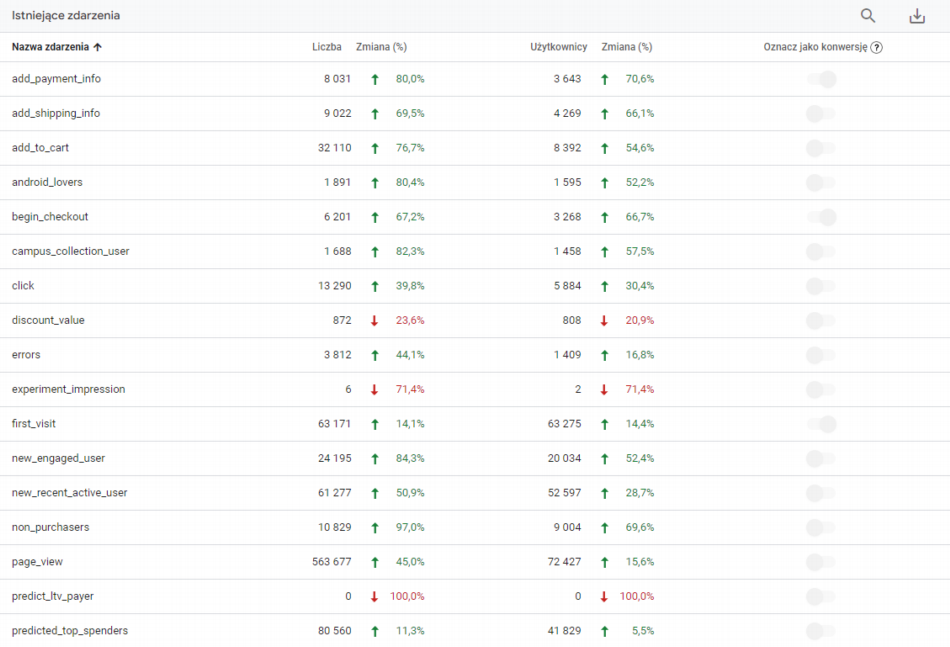 Źródło: Niektóre ze zdarzeń zbieranych przez Google Analytics 4.
