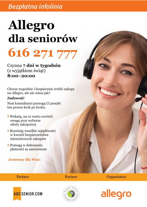 Odpowiadając na potrzeby dojrzałych klientów, Allegro stworzyło bezpłatną infolinię doradczą dla seniorów. I choć, patrząc z perspektywy wcześniejszych wskazówek, określenie „senior” nie jest może strzałem w 10, to za sam pomysł na tego typu wsparcie należy się uznanie. Osoby początkujące w tym serwisie, z pewnością to docenią.
