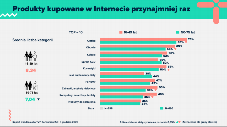 - Jak wynika z badania „E-commerce w Polsce 2021” przeprowadzonego przez Gemius 28% osób robiących zakupy w internecie to osoby w wieku 50+.