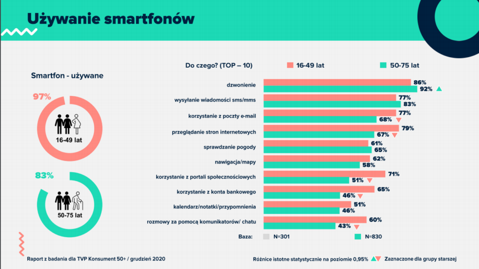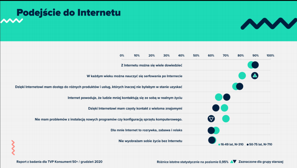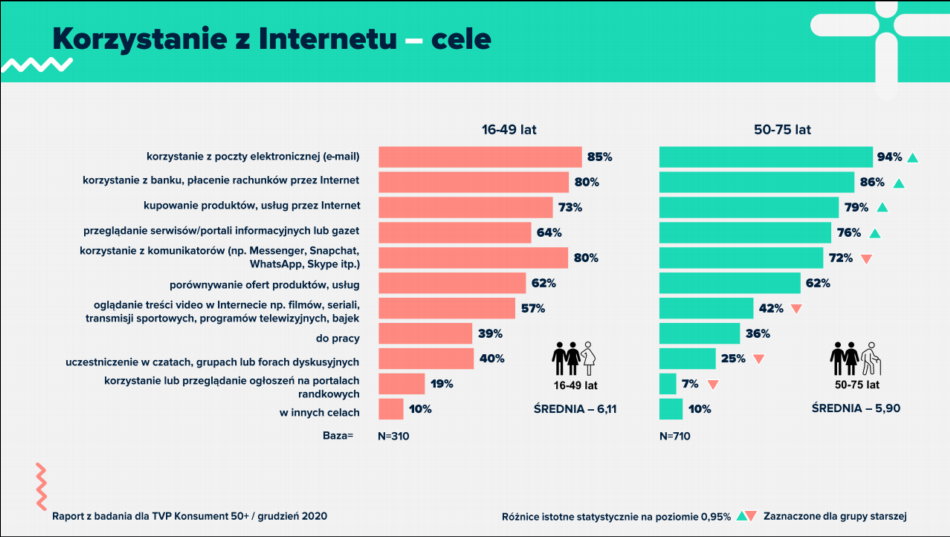 Różnorodność dobrze obrazuje poniższa grafika pochodząca z Raportu z badania dla TVP Konsument 50+ z grudnia 2020 roku.