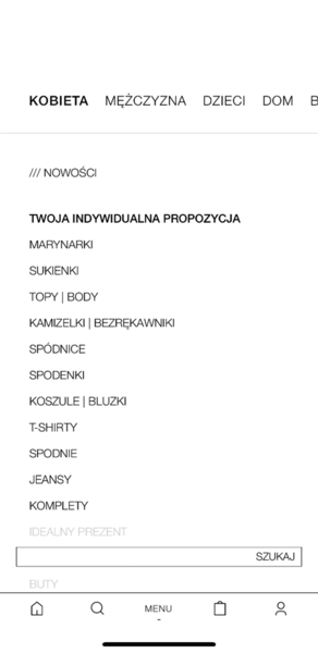 W aplikacji Zary wśród kategorii produktowych pojawiła się sekcja „Twoja indywidualna propozycja”, w której użytkownik znajduje produkty dopasowane do niego na podstawie historii zakupów i przeglądania.