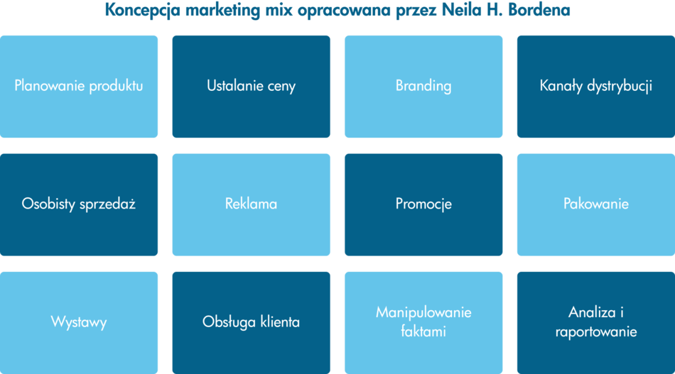Marketing mix jest jednym z kluczowych frameworków marketingowych, który ukształtował podstawy nowoczesnego zarządzania marketingiem. Koncepcja marketing mix opracowana przez Neila H. Bordena, profesora marketingu na Uniwersytecie Harvarda, w latach 40. XX wieku. Borden zidentyfikował 12 elementów, które składają się na marketing mix przedsiębiorstwa.