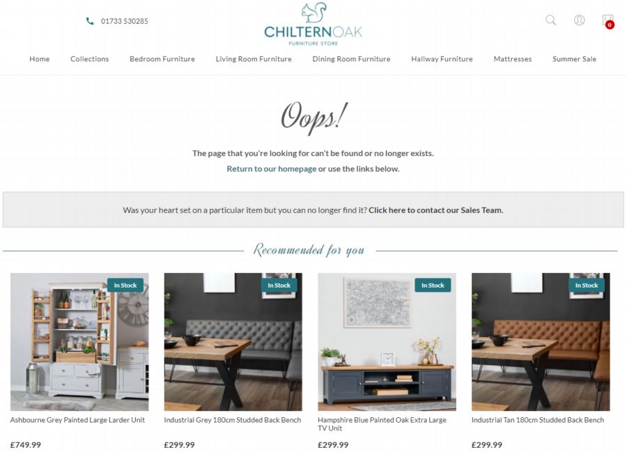 narzędzie: Silnik rekomendacji produktowych od QuarticOn; źródło: https://www.chilternoakfurniture.co.uk/.