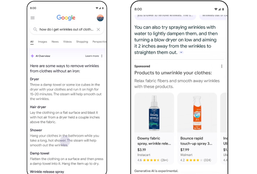 W USA od jakiegoś czasu testowane są streszczenia wygenerowane przez AI (AI Overviews). Chociaż rozwiązanie to wciąż budzi sporo kontrowersji, Google zapowiedziało, że przy podobnych treściach wyświetlać się będą mogły również reklamy tekstowe i produktowe. Mają pojawiać się one wyłącznie, gdy treść reklamy będzie odpowiednio dopasowana zarówno do zapytania użytkownika, jak i podpowiedzi, wygenerowanych przez sztuczną inteligencję. Dzięki takiemu rozwiązaniu użytkownik będzie mógł szybko uzyskać wszystkie potrzebne narzędzia, do rozwiązania swojego problemu.