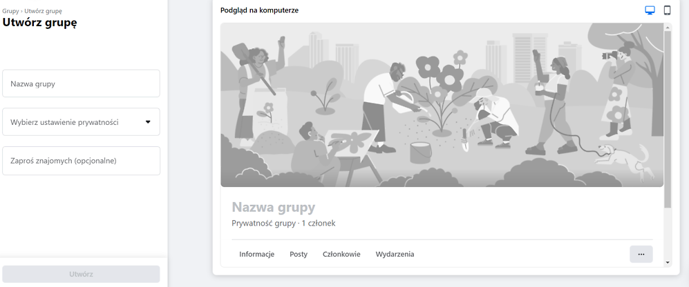 Dostosowanie grupy - po założeniu grupy warto ją spersonalizować, aby wyróżniała się na tle innych grup o podobnej tematyce.