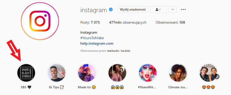 Na Instagramie dostępny jest dodatkowy kanał publikowania treści za pomocą Instagram Stories. Jest to narzędzie informacyjne wyświetlane w górnej części strony.