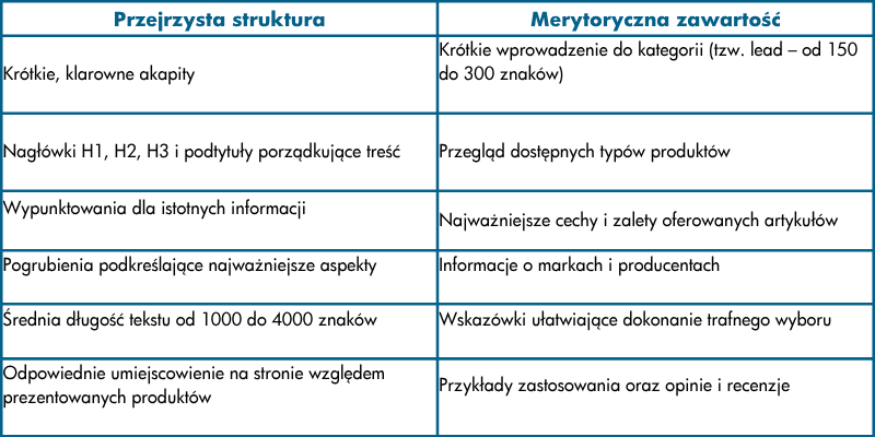 - Tworząc opis kategorii produktów, należy zwrócić uwagę zarówno na przejrzysty układ, jak i merytoryczną poprawność tekstu.