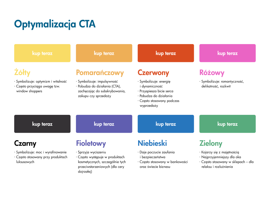 Kolor CTA ma znaczenie. Dobrze dobrany kolor może sprawić, że wezwanie do działania będzie się wyróżniać i przyciągnie wzrok użytkowników. Warto zastosować kontrastujące kolory w CTA, aby wyraźnie oddzielić je od reszty strony internetowej.