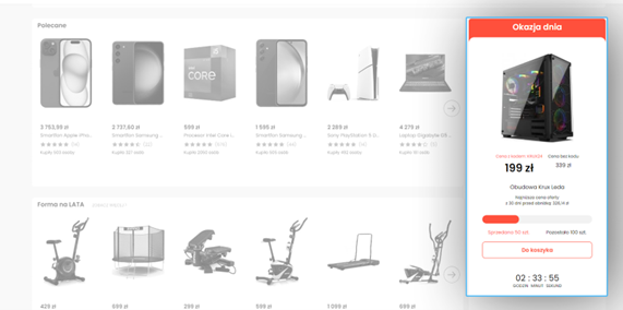 - Timer’y / liczniki, np. „czas trwania promocji”, „dostawa jutro - zamów w ciągu 15 min.”,