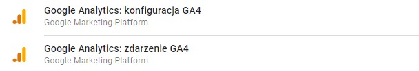 Google Tag Manager obsługuje usługi Google Analytics 4 za pomocą 2 współpracujących ze sobą tagów: