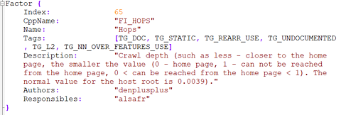 Powyższy czynnik dotyczy liczby linków przychodzących. Jak widzimy jest on oznaczony tagiem TG_STATIC. W sumie czynników oznaczonych, jako TG_STATIC możemy znaleźć 684, jeśli chodzi o czynniki TG_DYNAMIC, to jest ich aż 1154.