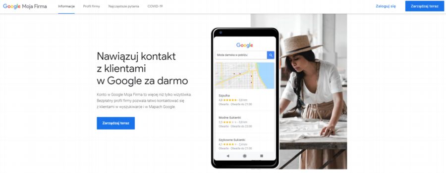 - Google Moja Firma jest narzędziem, w którym zaprezentować można firmę w mapach Google.